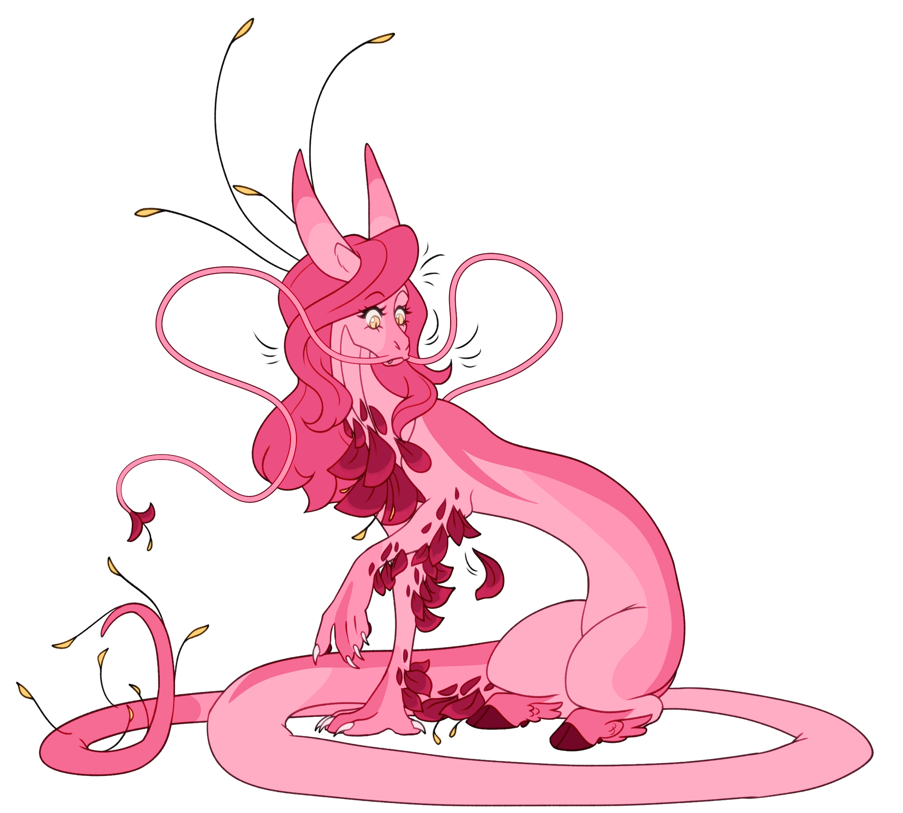 Late Plants Dracos can't have wings and horns. Many plants grow on their body and they release pollen around them in the form of smoke (This allows them to pollenize plants). Some are composed of harmless plant, but other can be more dangerous, even if late plants draco are quite passive. They have two antennae than can have leaves or flower petals on it: They have pistilla at the end of them. The tips of their tails are made up of leaves and they have on their backs and tails various plants that grow. When they are sick, they spit out a sticky and viscous substance that looks like sap. (It's very effective against injuries tho!) Late plants draco have an average fire, it's just burn and don't have any abilities.